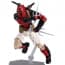 Figma EX-042 Deadpool DX Ver Figure. He comes with three face plates including his standard expression, a glaring face as well as a grinning expression. His swords, a knife and two different handguns are all included as weapons for him to use. A huge selection of hand parts including hands in a heart shape, a thumbs-up hand, pointing hand, aloha hand and more are included!