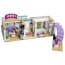 Explore and play in Friends Stephanie’s House, featuring a kitchen with bay window, opening fridge and oven, lounge with television and spiral staircase up to a bedroom with curved balcony, shower room and an office. Share friendship moments on the swing chair on the porch, and look after the baby rabbit in his hutch. Includes three mini-doll figures plus a baby rabbit figure.