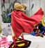 - Supergirl confidently poses with her hair and cape flowing along with the wind showing off her muscles.