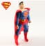 - Wears iconic costume with cape and Superman logo